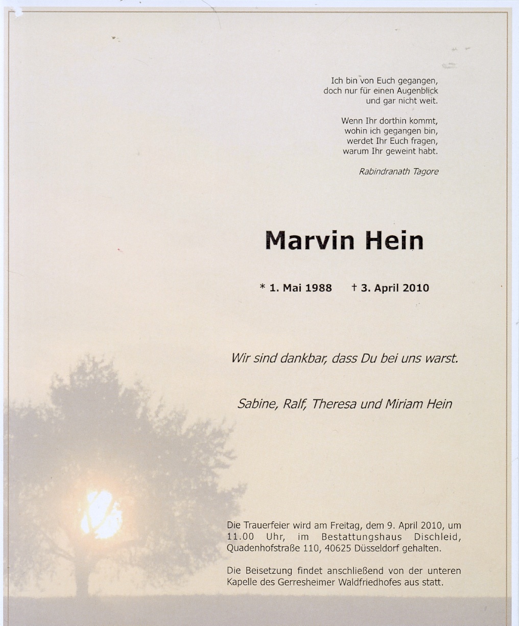 | 1.5.1988 | An einem Sonntag geruht Marvin Ernst Hinnerk